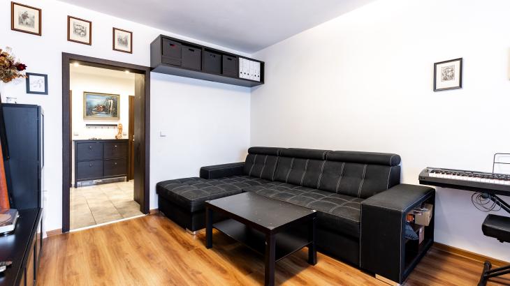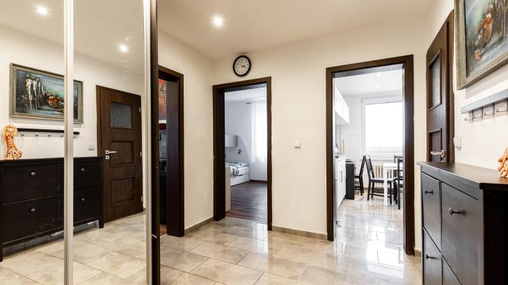 Byt má k dispozici praktickou komoru, která je umístěna naproti bytu na chodbě.