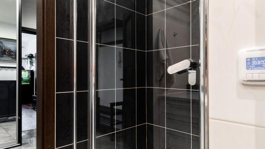 V pokojích jsou vinylové podlahy, ve zbývajících místnostech dlažba.