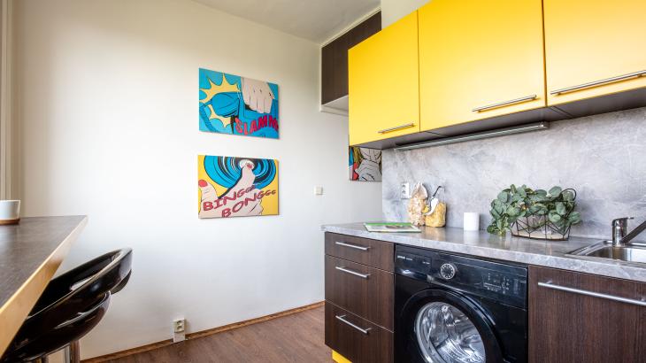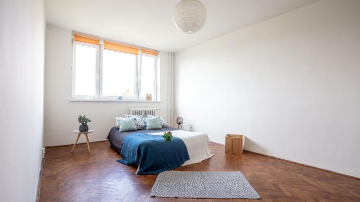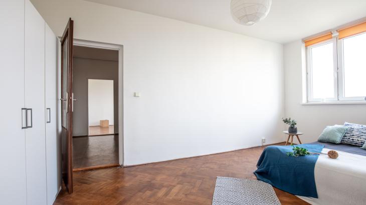 Byt je v sedmém podlaží domu po revitalizaci, má zděné jádro, neprůchozí pokoje orientované na západní stranu.