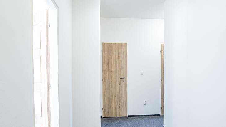 Pokoje jsou neprůchozí, přístupné z chodby, kde je dostatek místa pro úložné prostory.