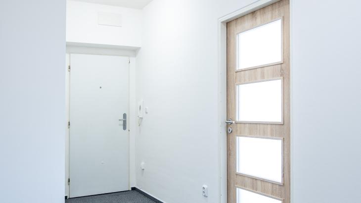 Před vstupem do bytu je k dispozici praktická uzamykatelná komora.