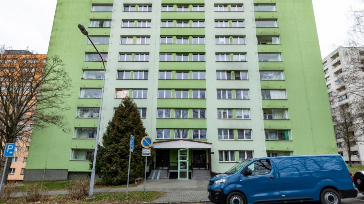 Byt je ve čtvrtém patře domu po revitalizaci, který má rovněž bezbariérový přístup.