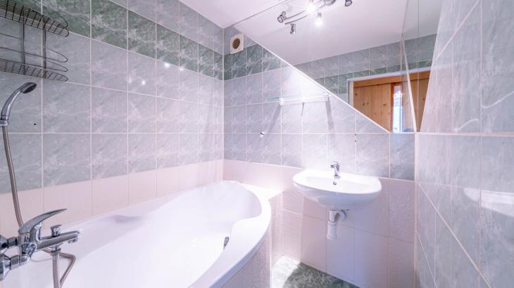 V koupelně provedena sádrokartonová vestavba.
