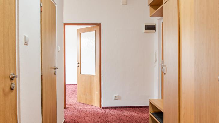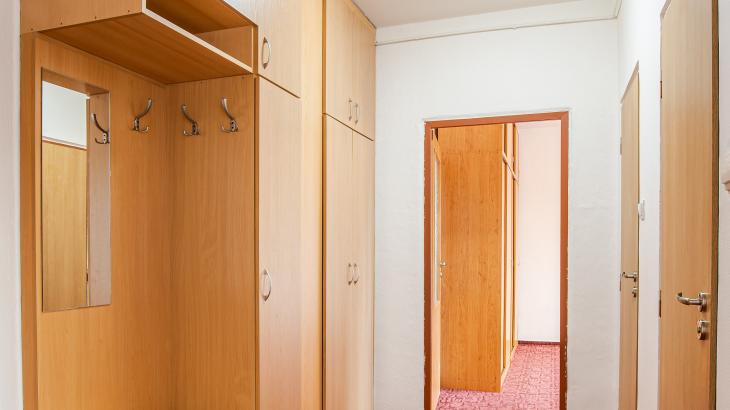 Pokoje jsou neprůchozí, přístupné z předsíně, ve které je umístěna na míru zhotovená stěna s dostatkem úložných prostorů.